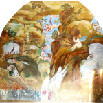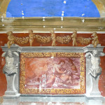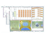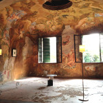 The theatre on the upper floor of the villa’s West wing is a magical space covered with frescoes. In the warmm season it can be used for art exhibitions and small concerts. Future restoration work will provide 30 seats, and a lecture and workshop room. The ground floore space can be used as foyer and dining room.